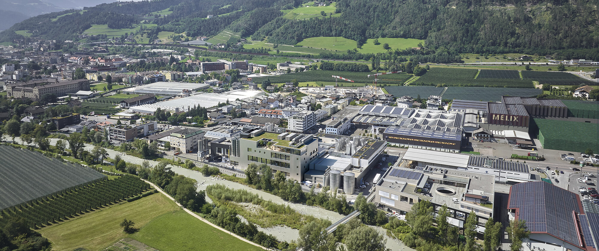 Calm, compact building with an elegant touch. As a result of economic and production-related considerations, as well as future market and workplace requirements and due to the ageing building fabric, a master plan was drawn up over several project phases for the future structural development of the production plant of the existing Brixen dairy farm in order to be able to operate the Varna site competitively in the medium and long term. Following the relocation and expansion of the existing office space, as well as various structural adjustments, such as the construction of a new cooling tunnel, the masterplan includes the construction of a five-storey, east-facing extension, which remains almost invisible from the street side. Large areas of glazing provide bright workspaces in production, offices and laboratory areas, while targeted views in and out - for example through the visitor platform with floor-to-ceiling glazing - signalise openness and transparency. The levels in the interior are clearly zoned with structured pathways, high-quality materials and an open, multifunctional cafeteria with a garden create a modern working and visitor atmosphere that strengthens the identity and efficiency of the site in equal measure.